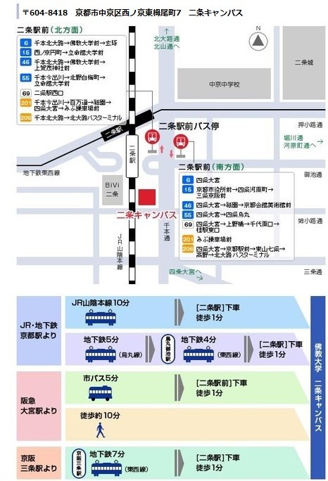 〒604-8418 京都市中京区西ノ京東栂尾町7 二条キャンパス